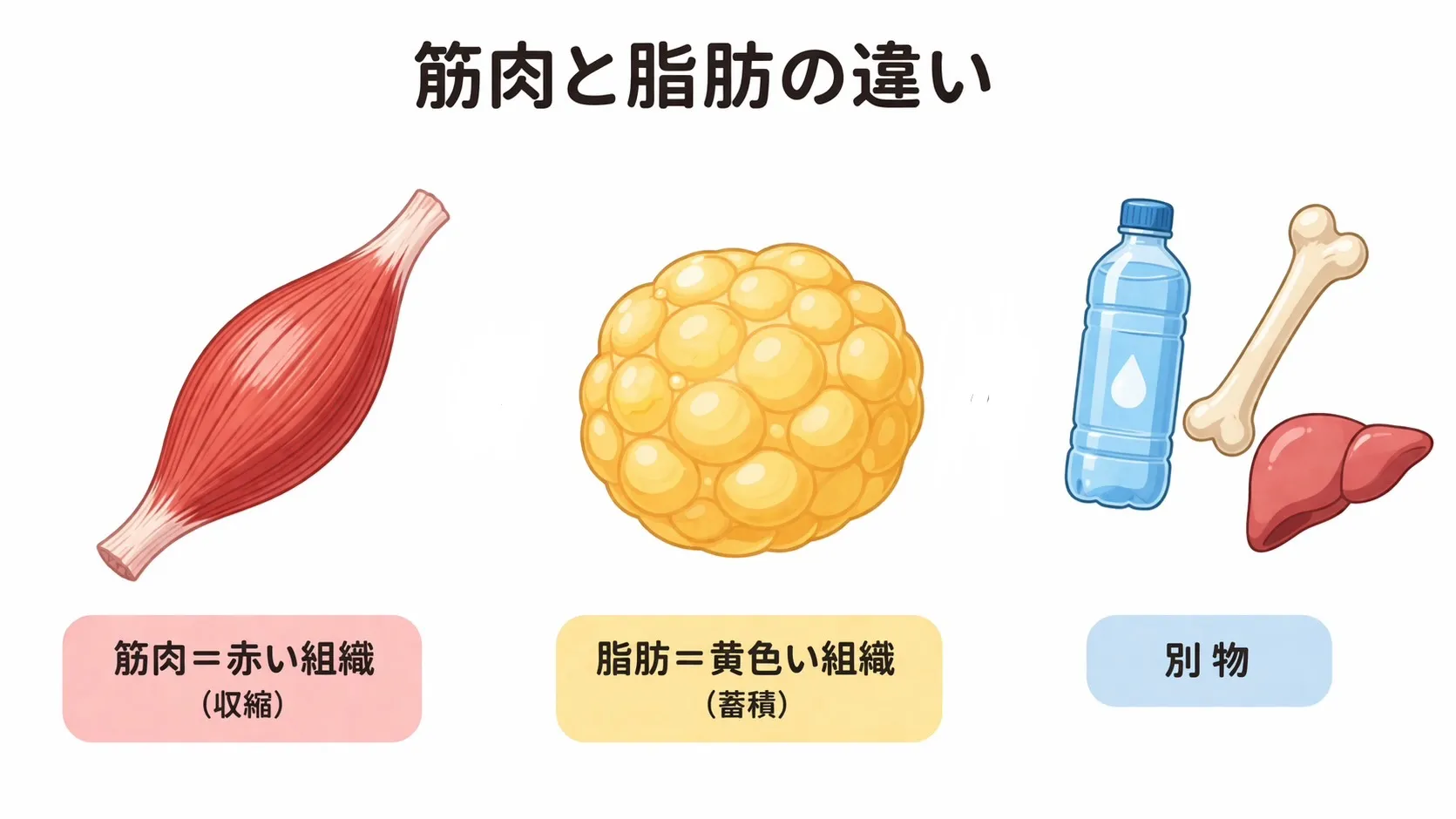 筋肉と脂肪は、そもそも構造も機能も全く違う組織です。