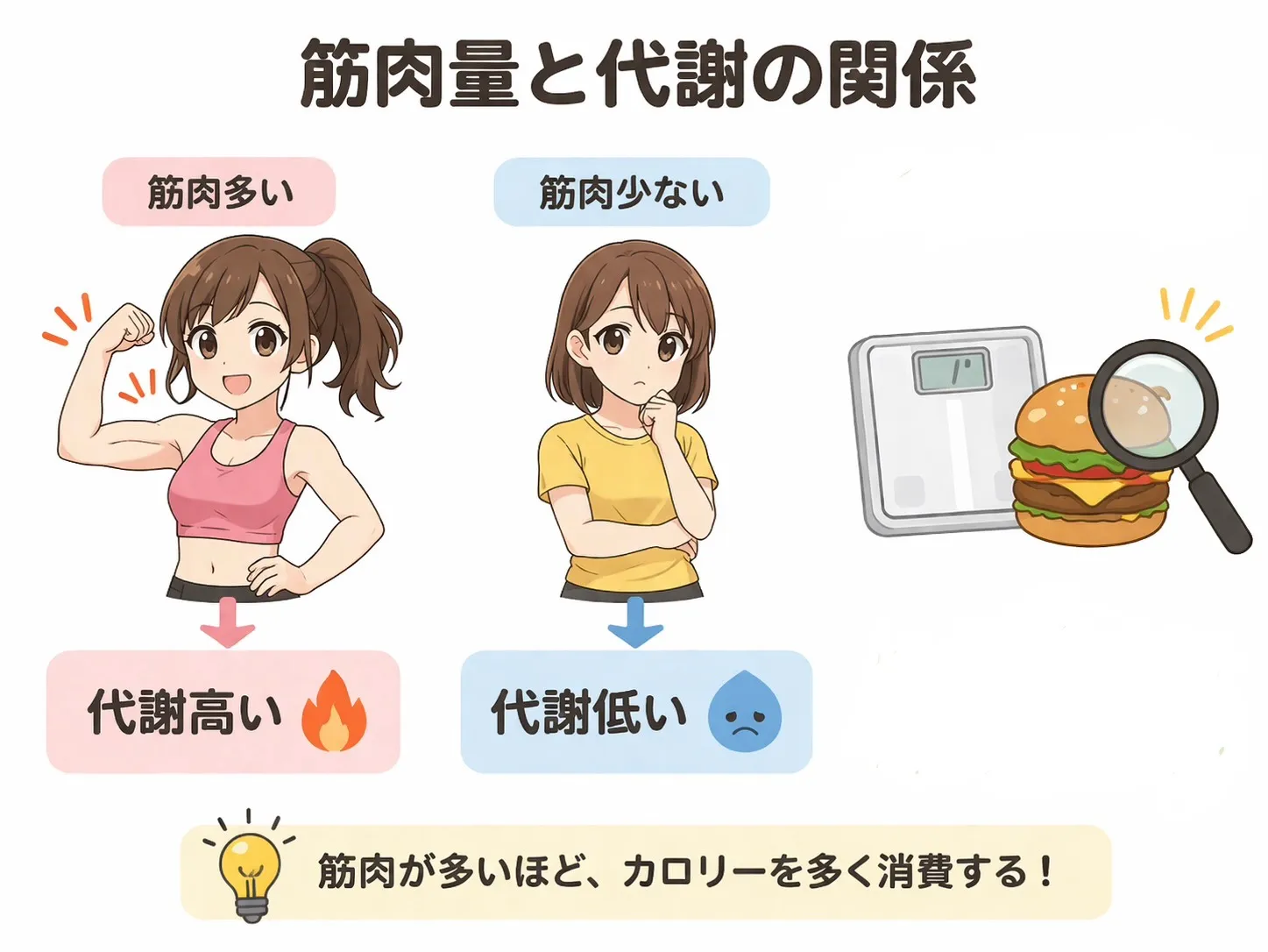 研究でも、除脂肪量(筋肉量)が多いほど基礎代謝が高く、体脂肪の蓄積が抑えられることが示されています。