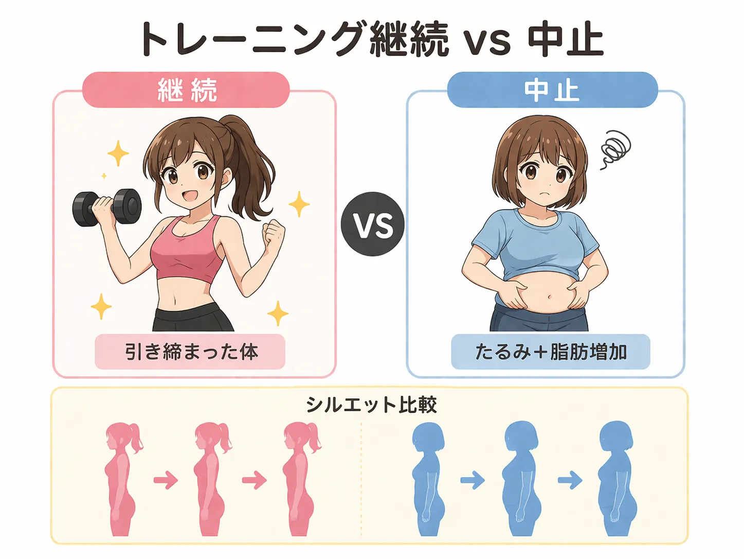 また、トレーニングをやめる場合でも完全にゼロにするのではなく、最低限の刺激を維持することが重要です。