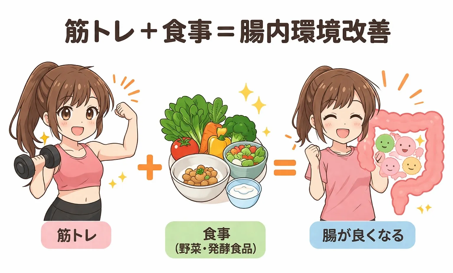 つまり筋トレは、腸内の“良い菌が育ちやすい環境”を作るのです。