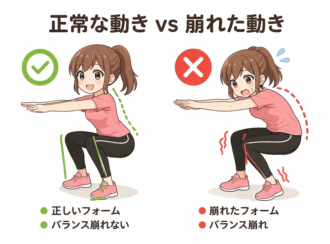 ・動作練習(スクワット、ランジなど)