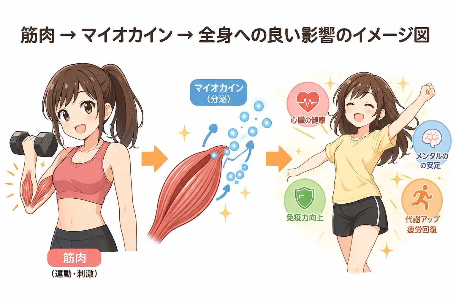 筋肉から分泌される「マイオカイン」と呼ばれる物質は、抗炎症作用・免疫調整作用を持っています。