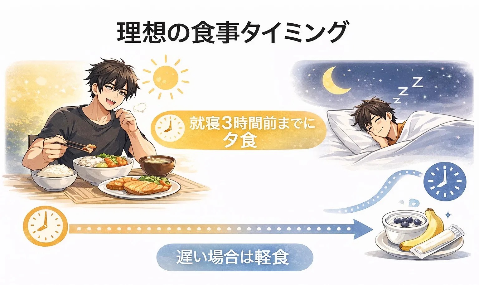一般的には、就寝の2〜3時間前までに食事を終えることが推奨されています。