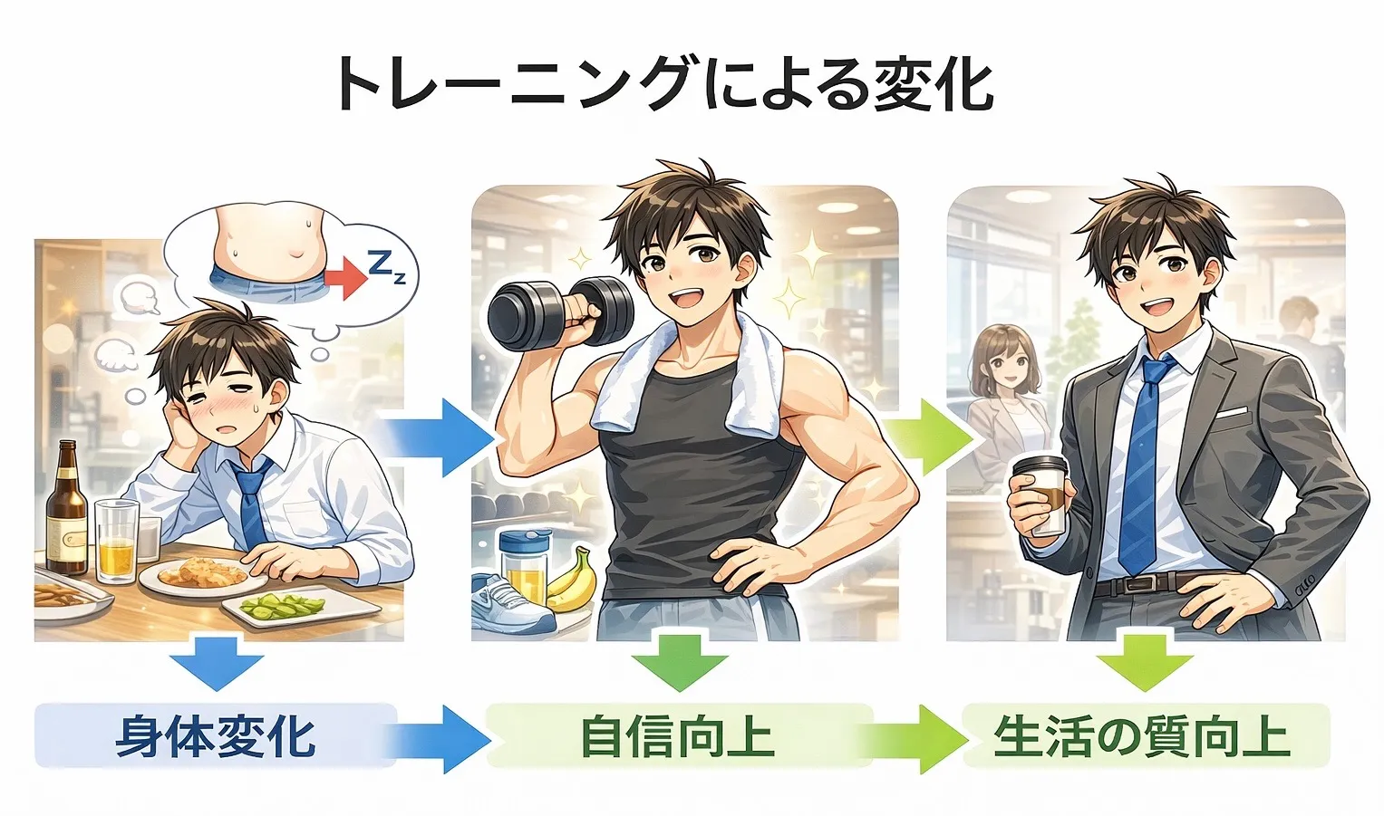 筋トレによって身体が変わることで、自信がつき、行動も変わります。