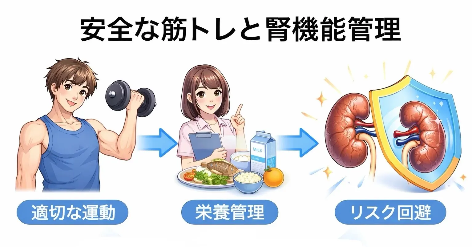 ですが結論から言うと、適切な筋トレと栄養管理は、むしろ腎機能を守る方向に働きます。