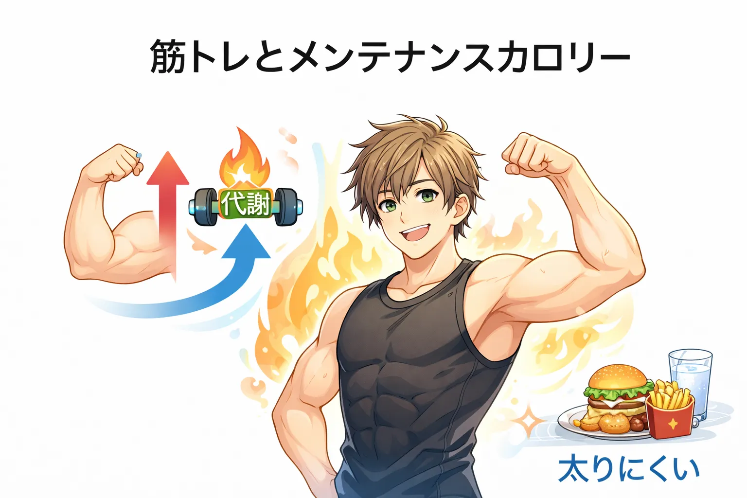 基礎代謝は何もしなくても消費されるエネルギーで、筋肉量が多いほど高くなります。