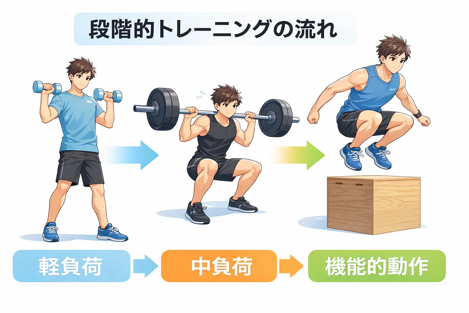 ただしここで重要なのは、適切な負荷と段階を守ることです。
