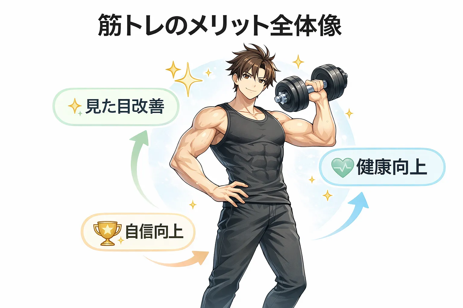 つまり筋トレは、見た目+健康の両方を同時に改善する手段です。