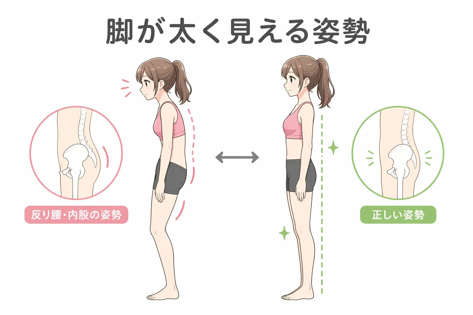 結果として、脚が太く見える=脂肪が多い状態が生まれます。