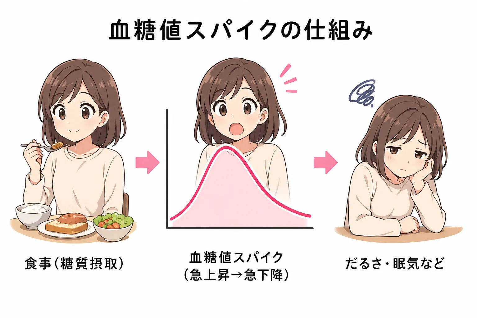 特に現代人は、白米・パン・砂糖などの精製された炭水化物を多く摂取しているため、血糖値スパイクが起きやすい環境にあります。