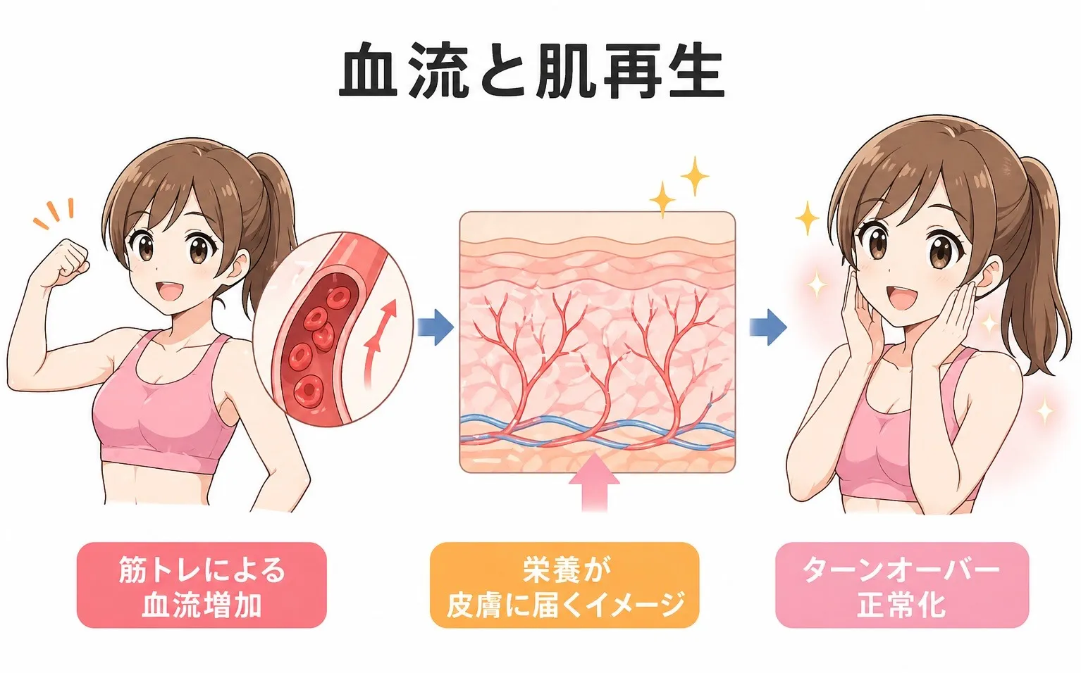 つまり、筋トレによって「身体全体の再生力」が高まり、その一部として皮膚も若返るというわけです。