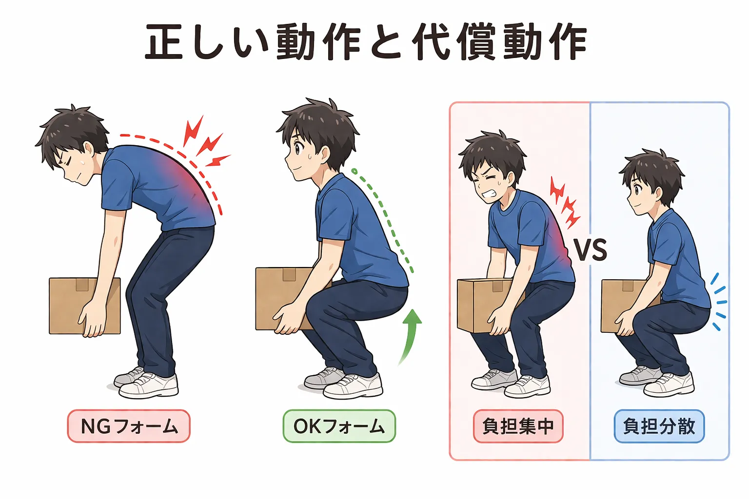 慢性腰痛の人は、痛みを回避するために不自然な動き方をしていることが多いです。