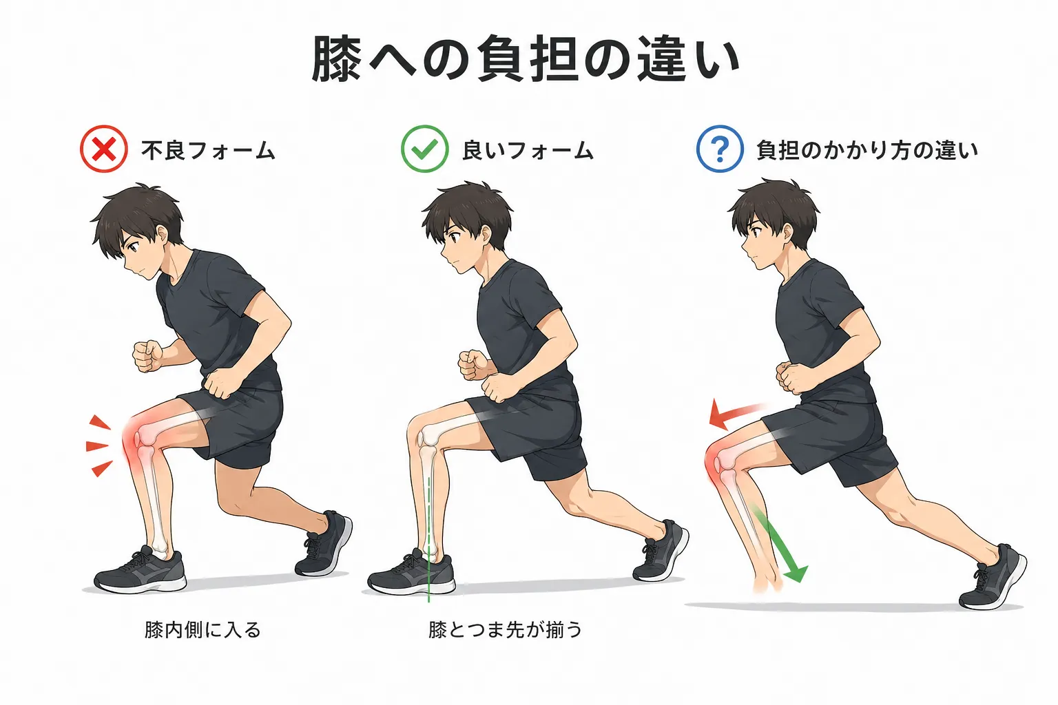 スクワットやランジなどの動作を正しく再学習することで、膝へのストレスを適切に分散させることができます。