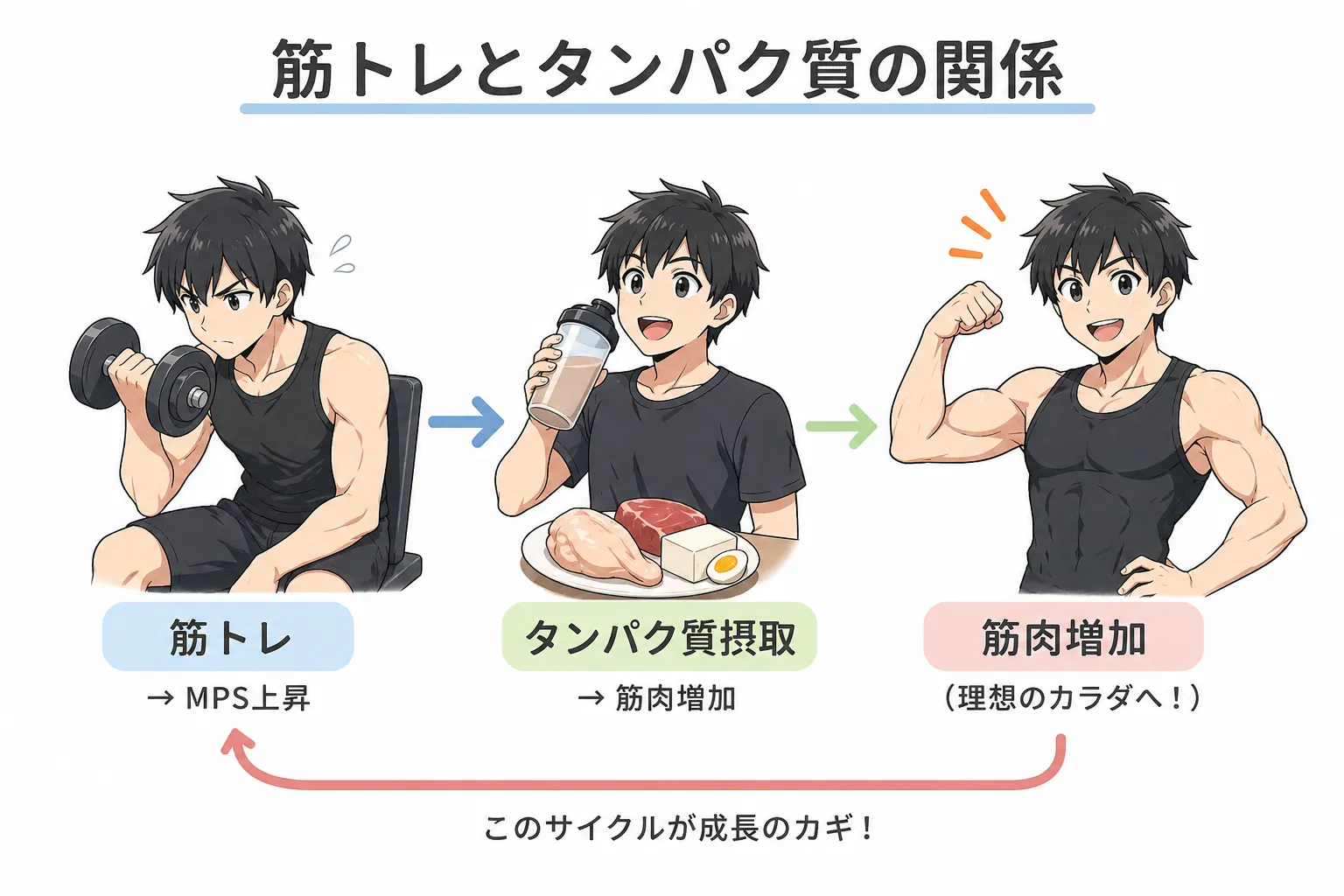 つまり、筋トレとタンパク質はセットで考える必要があります。
