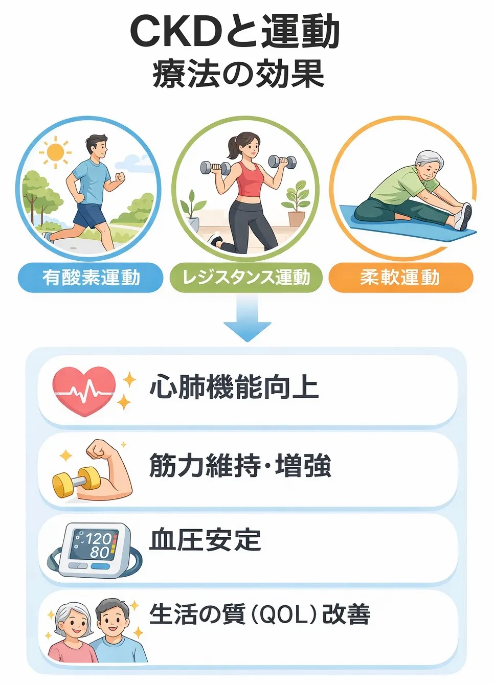 慢性腎臓病(CKD)に対する運動療法の効果 ―安全で効果的な運動が腎機能と全身の健康を支える―監修・著者:パーソナルジム心斎橋理学療法士志戸岡大起https://personalgymshinsaibashi.jp/前回記事:人工股関節(THA)置換後の運動「慢性腎臓病(C…